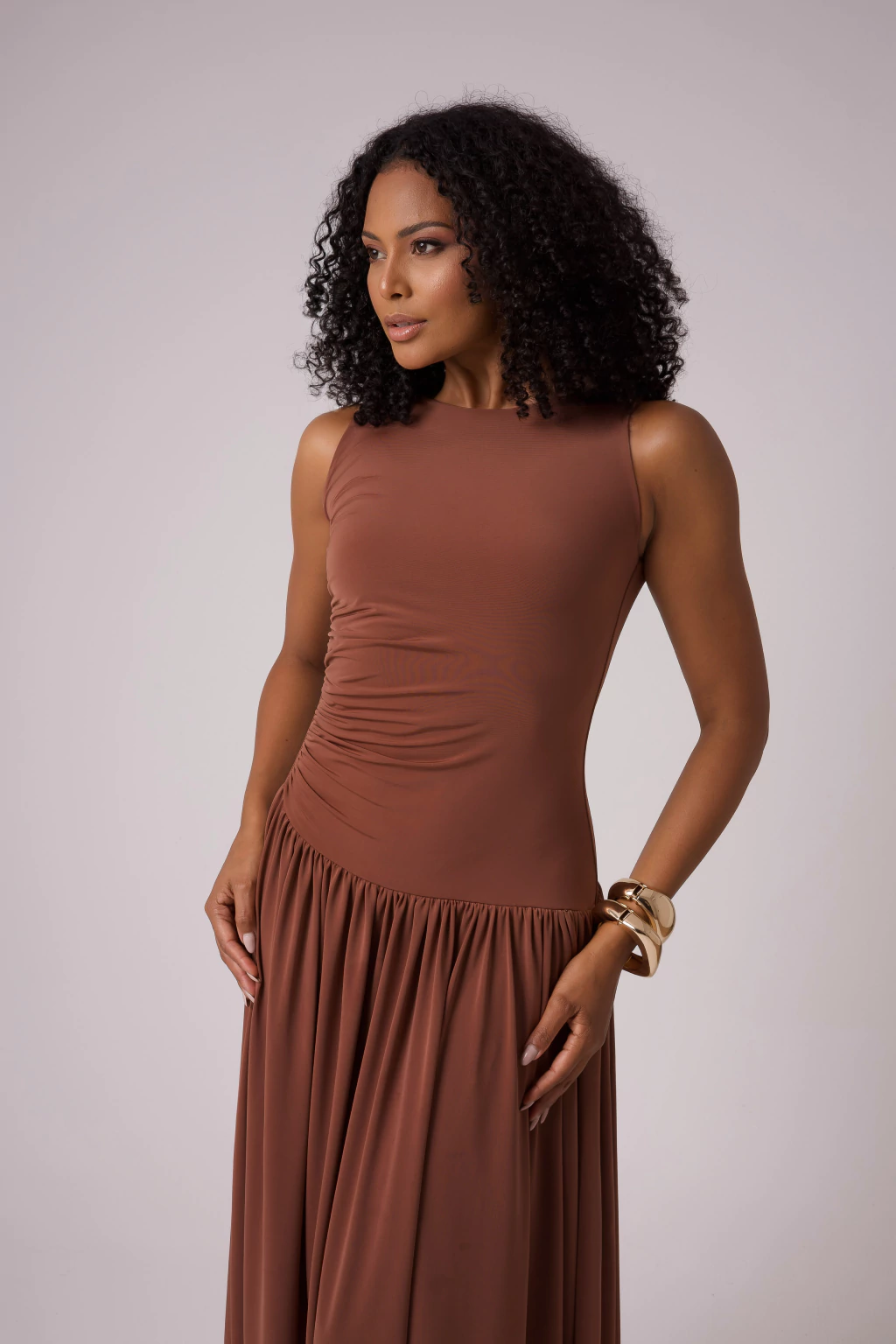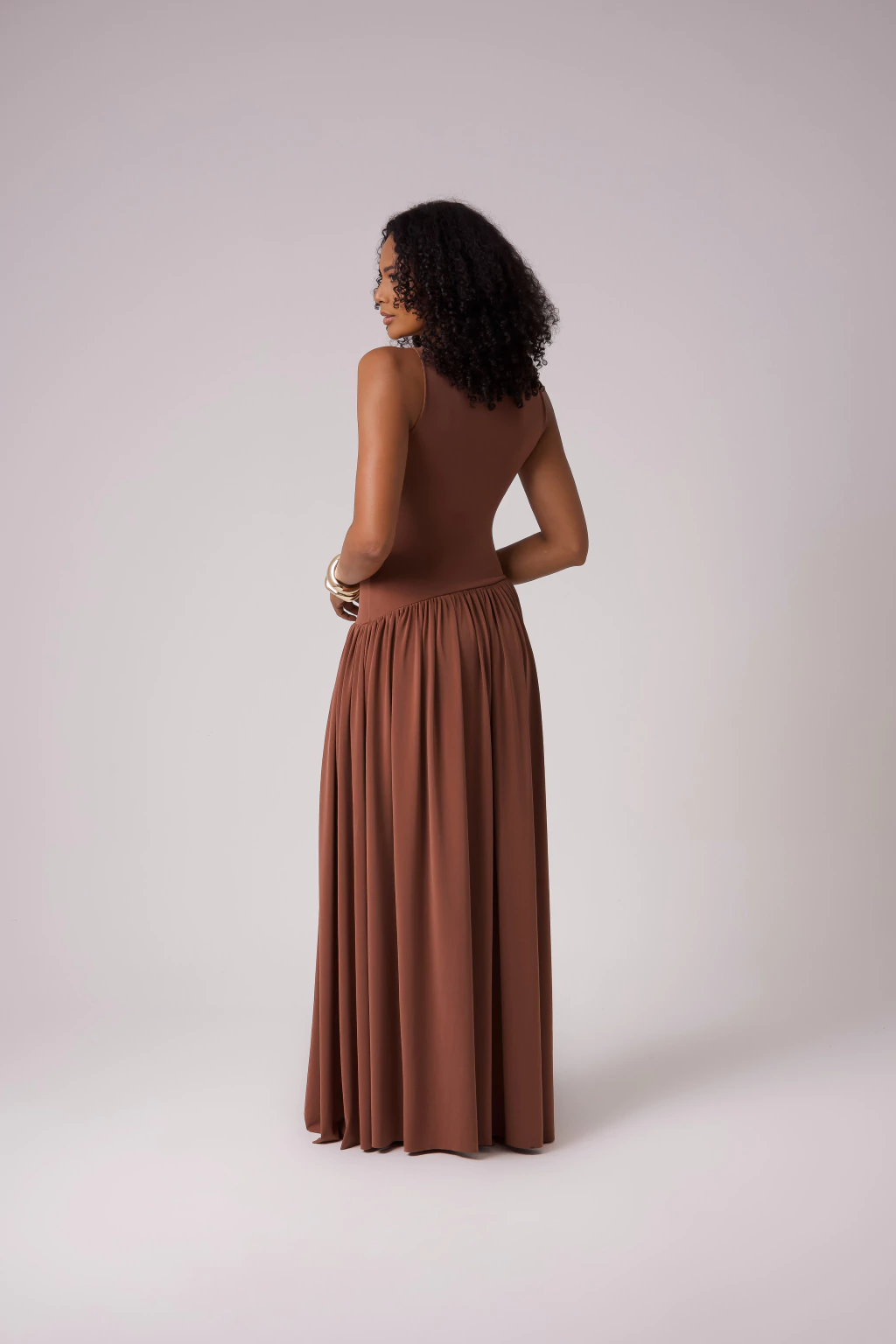 Vestido Longo Cintura Baixa Drapeado Aura
